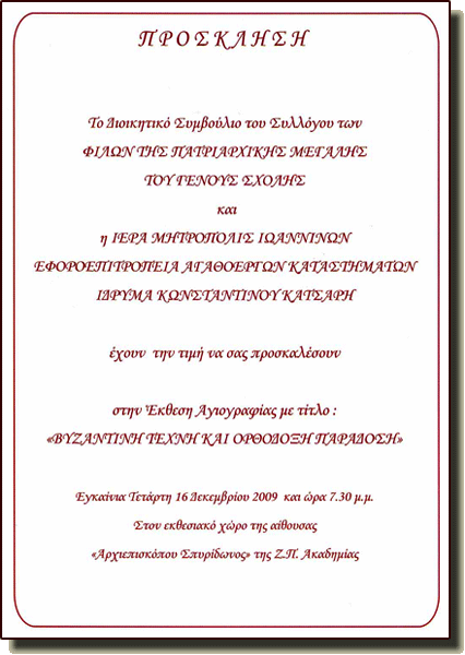 Εγκαίνια Τετάρτη 16 Δεκεμβρίου 2009 και ώρα 7:30 μ.μ.