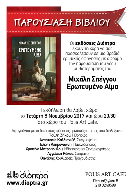 Οι εκδόσεις Διόπτρα μας προσκάλεσαν σε μια βραδιά ερωτικής αφήγησης με αφορμή την
